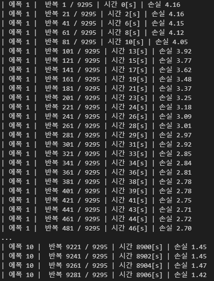 # CBOW 모델 학습