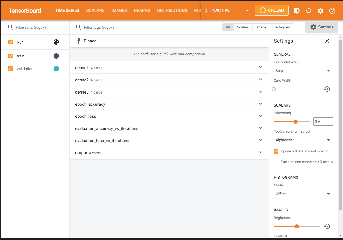 - 텐서보드를 사용하기 위해 logs 폴더를 만들고, 학습이 진행되는 동안 로그 파일을 생성