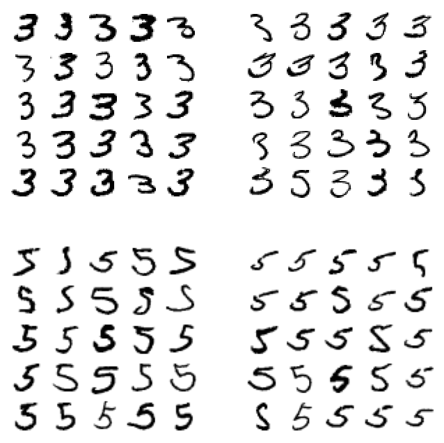 -3과 5에 대해 3을 3으로, 3을 5로, 5를 3으로, 5를 5로 예측한 데이터들을 한번에 살펴보기