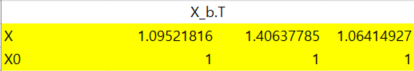 # X0에 1을 추가한 독립변수 배열에 배열을 전치시킨 것을 곱하여