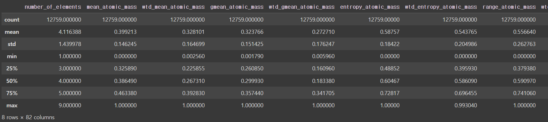 target = feature.pop('critical_temp') # target 데이터 추출, train에는 feature 데이터만 남음