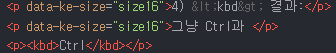 <kbd></kbd> // 컴퓨터에 입력된 키보드(및 기타유형) 입력 표시