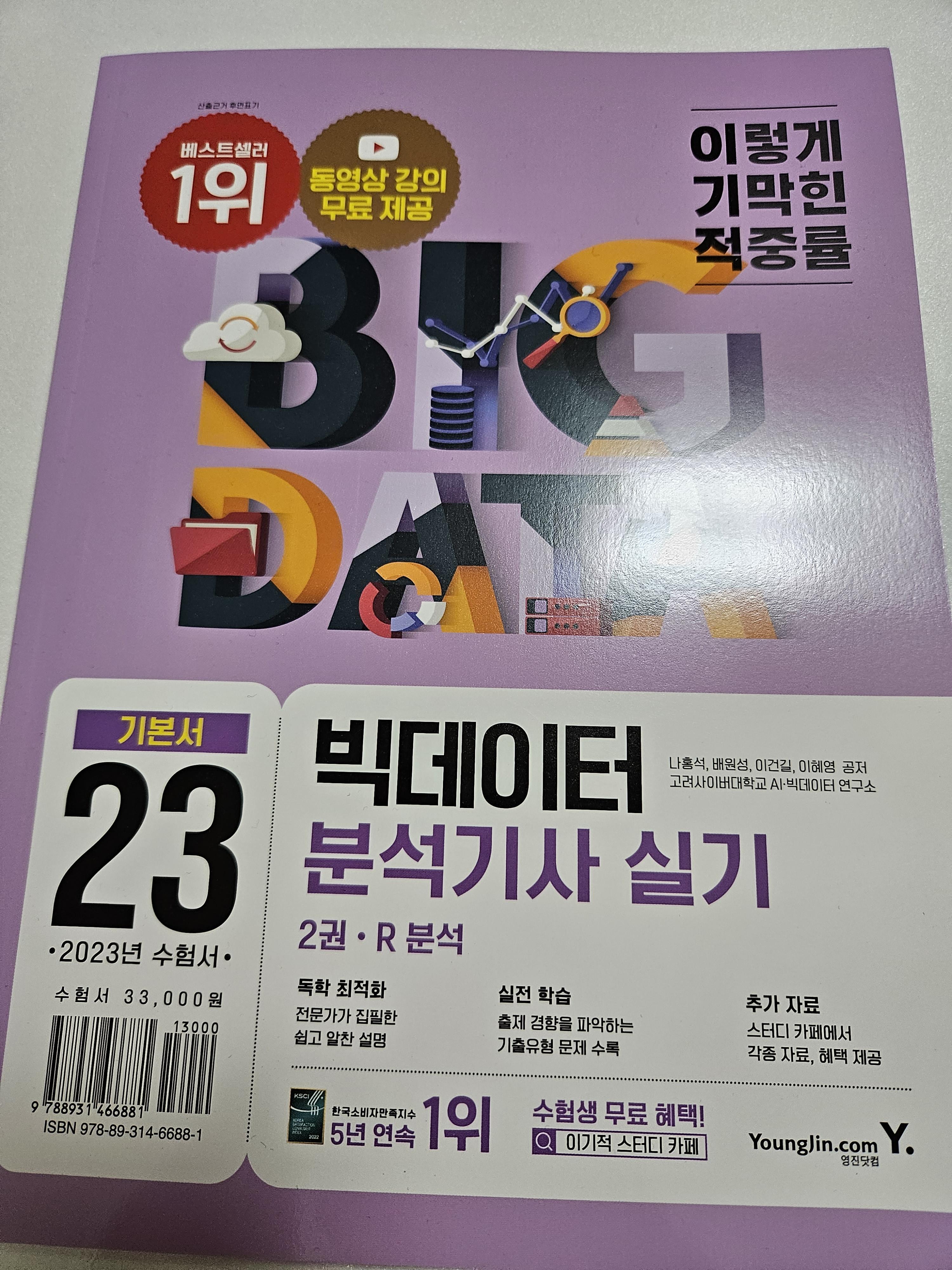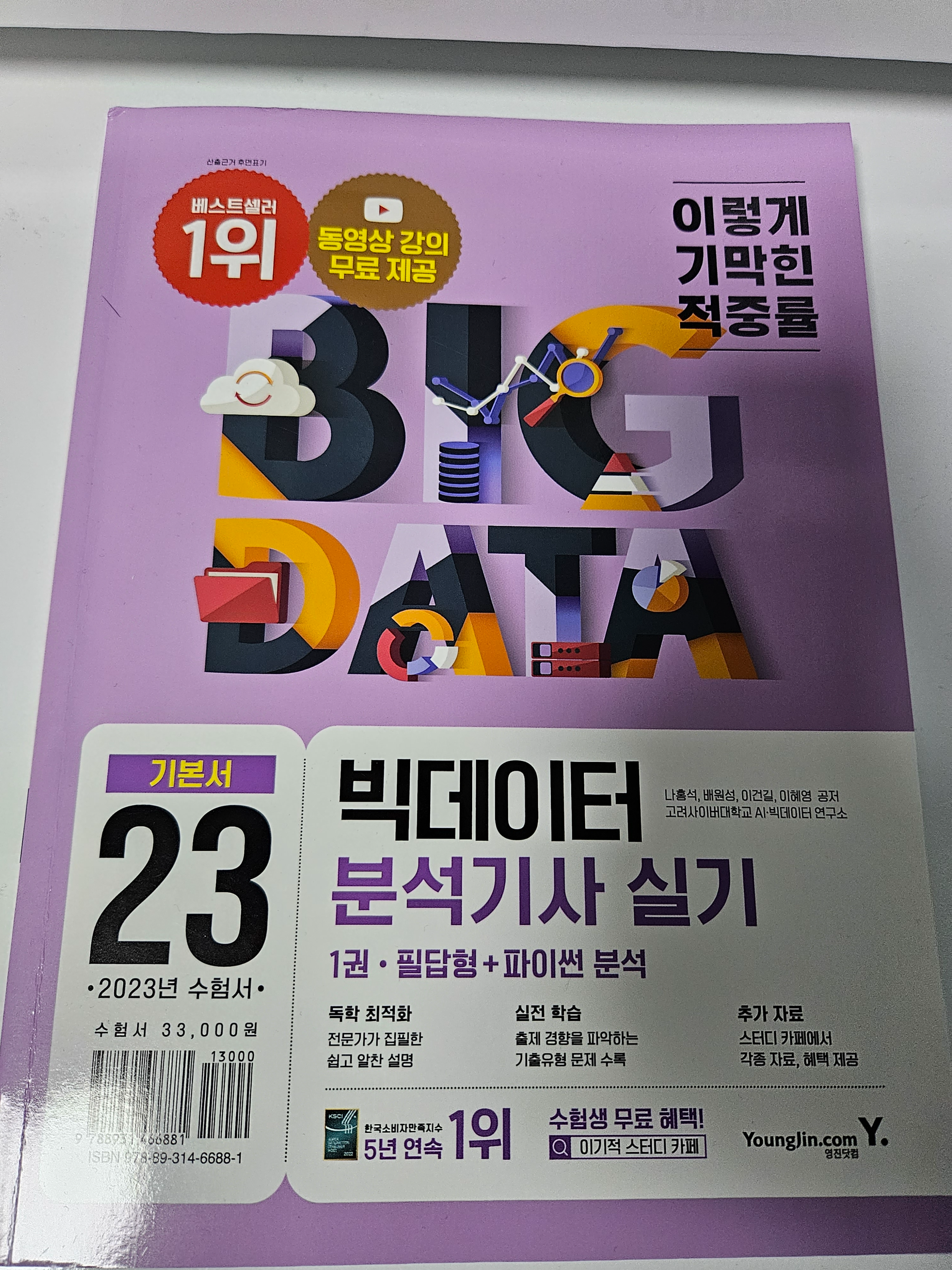 '빅데이터 분석기사' 시험의 실기를 준비하는데 큰 도움이 되는 영진닷컴에서 나온 '2023 이기적 빅데이터분석기사 실기 기본서'를 받아보게 되었다.