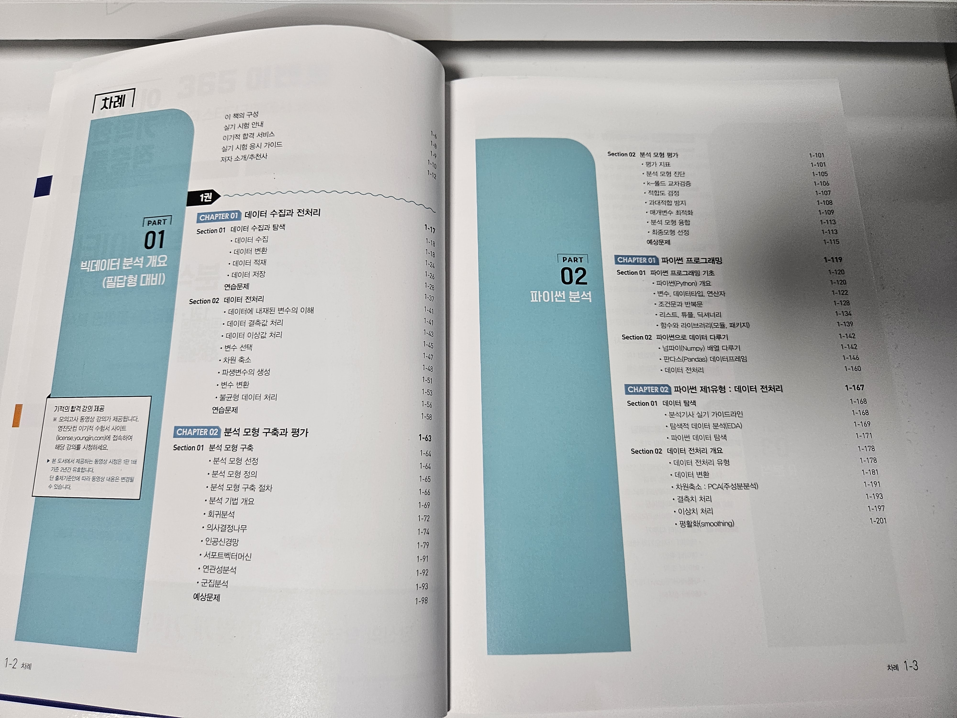 필답형 + 파이썬 분석 + R 분석 3개로 구성되어 있지만 필답형은 최근 시험부터 없어졌고, 파이썬 또는 R 중 자신이 시험 칠 과목에 맞게 골라보면 되어 한 권으로 끝낼 수 있어 편해 보였다.