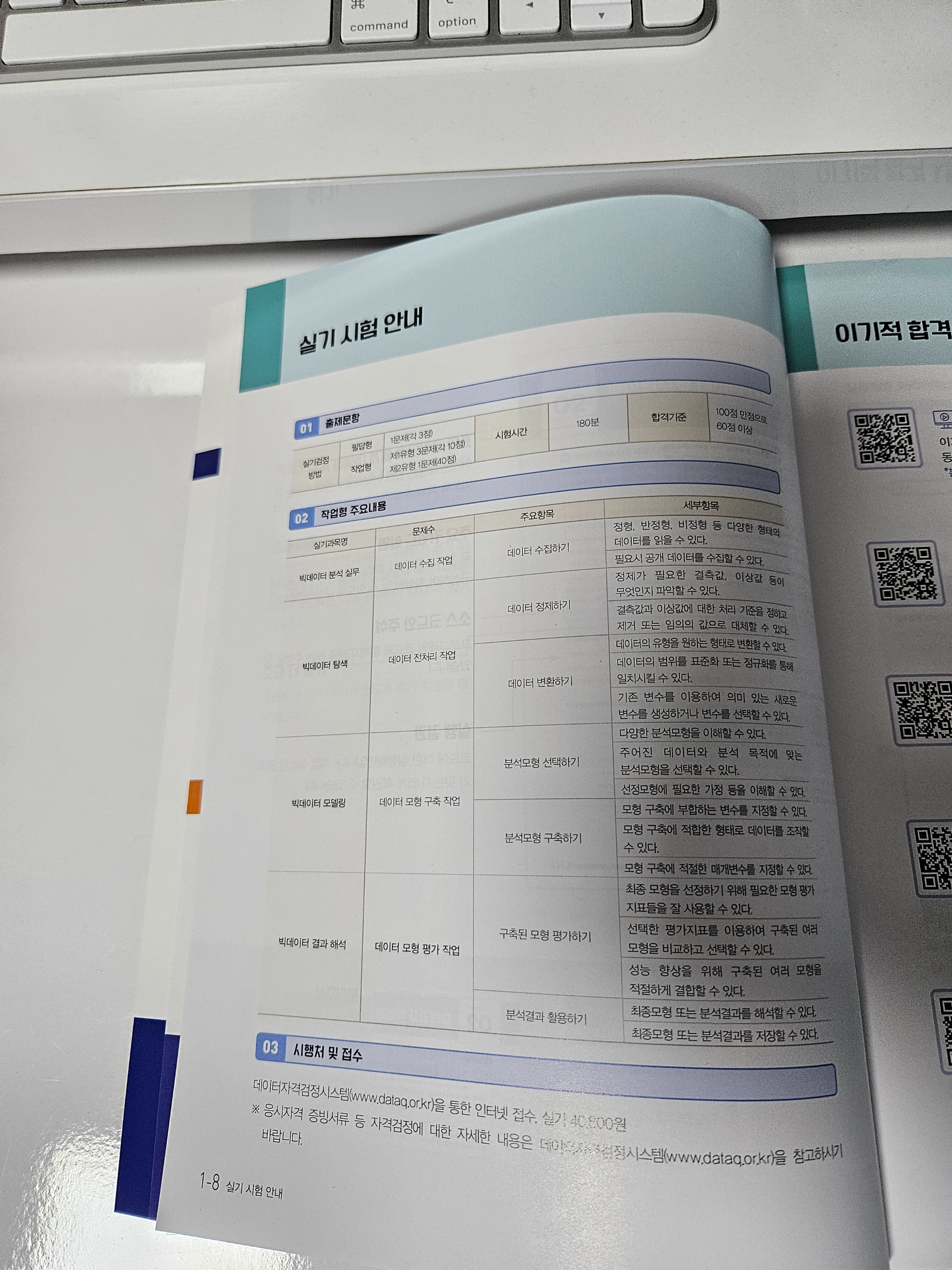 실기 시험에 대한 안내는 책의 맨 앞 장에 나와있으며, 동영상 재생 목록, 질문답변, 추가 자료, 정오표, 유튜브 채널 등도 QR코드로 간편하게 찾아볼 수 있다.