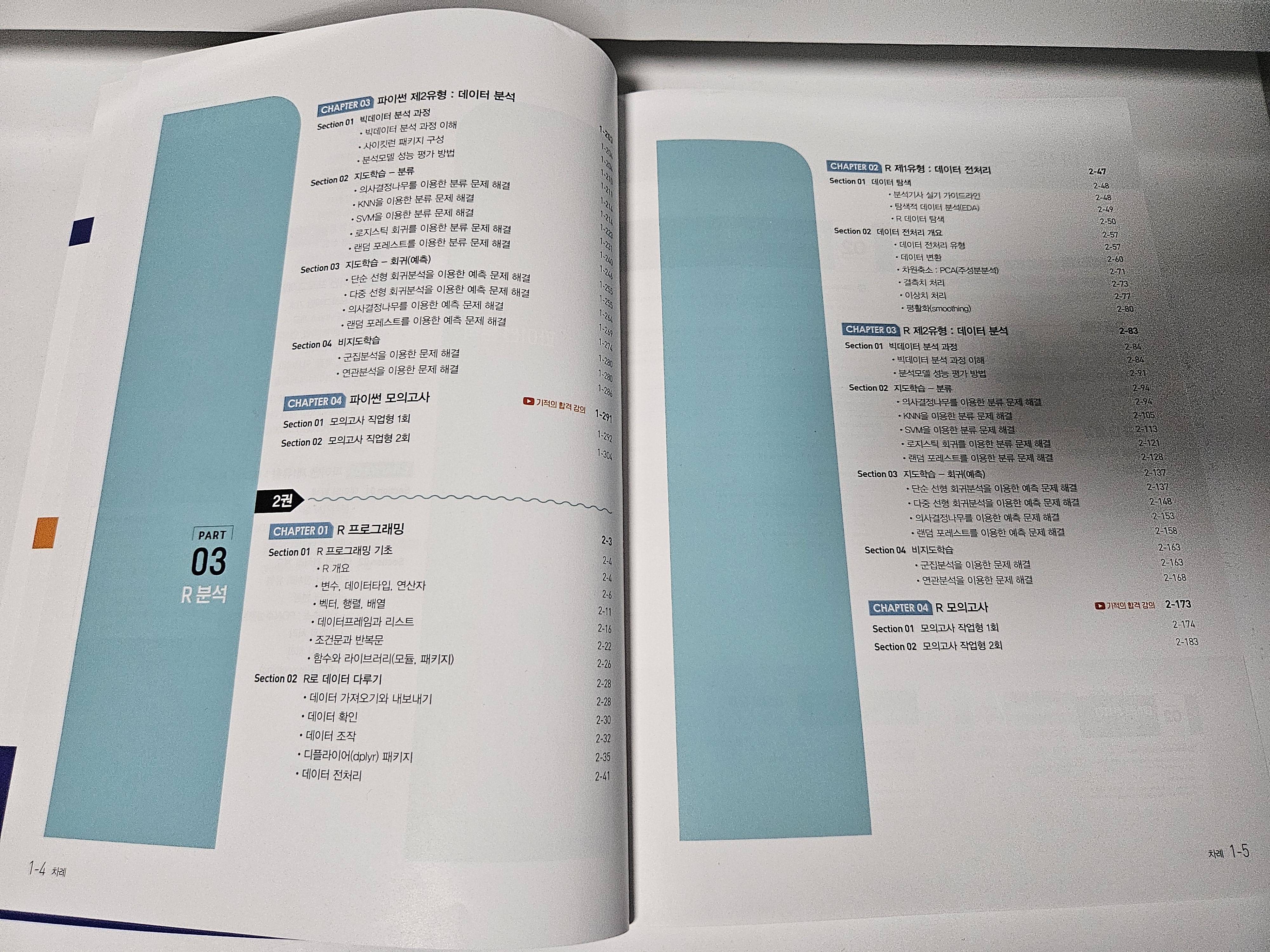 R 과목도 마찬가지로 기초부터, 머신러닝 코드까지 친절하게 설명되어 있어 공부하는데 어려움을 느낄 일이 없어보였다.