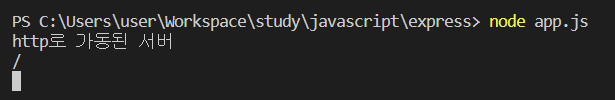 - 터미널에 'node app.js' 입력하여 서버 가동