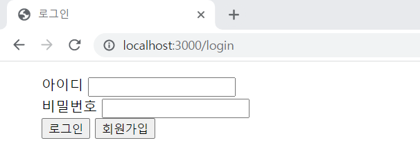 4) 주소창에 'localhost:3000'과 'localhost:3000/login' 입력하여 서버 확인