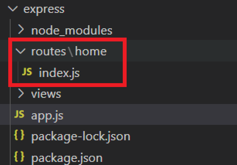 1) 작업 폴더 > routes > home > index.js 파일에 라우팅하는 부분을 잘라내어 붙여넣기