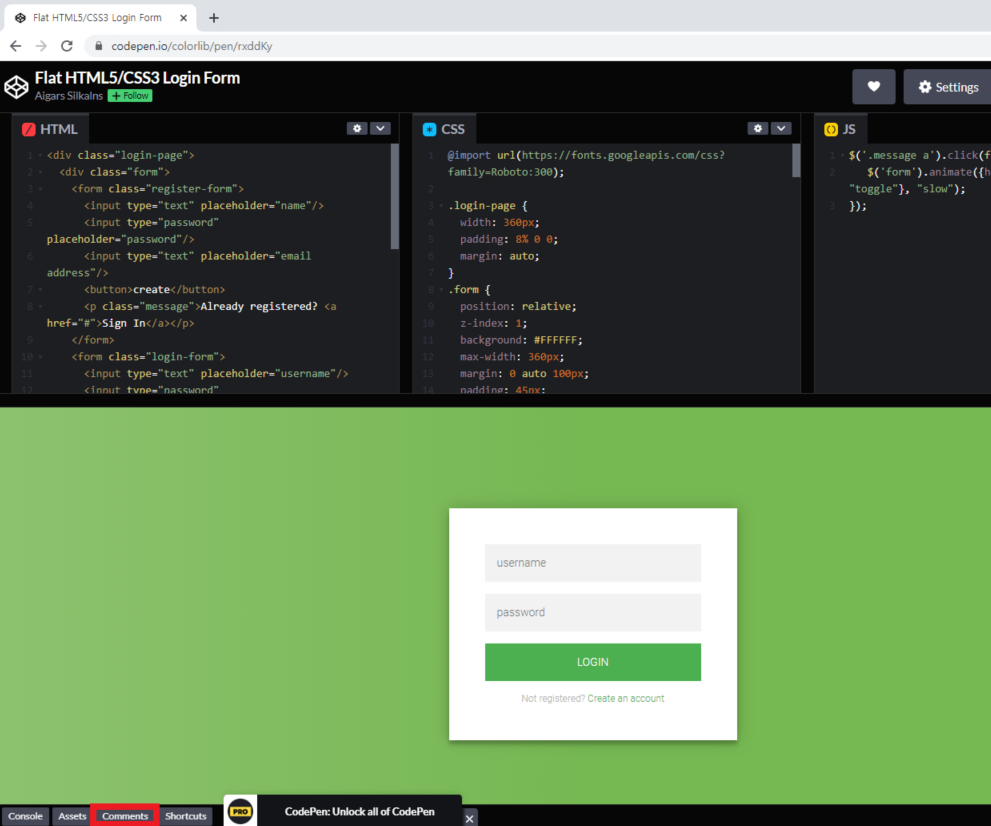 2. Search Codepen... 에 각종 테마 검색