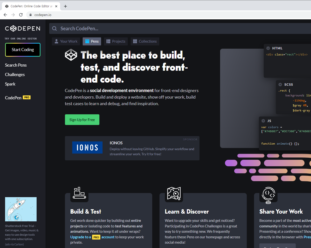 1. https://codepen.io 접속