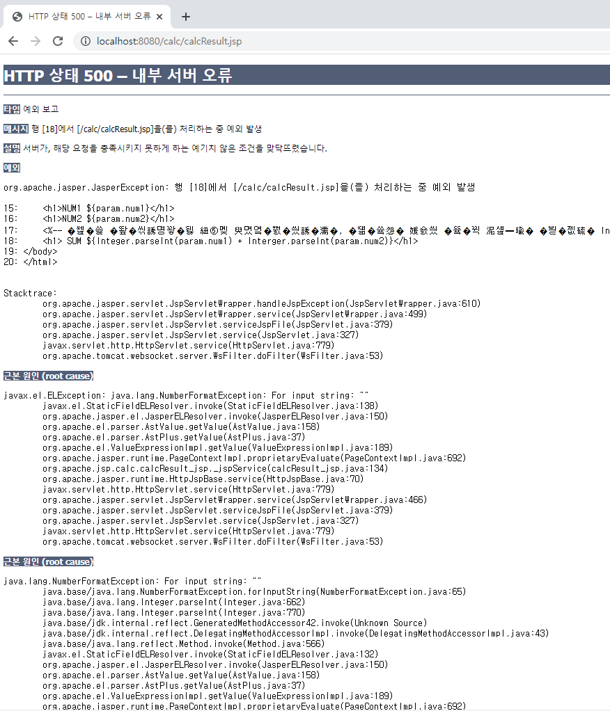 - JSP는 기본적으로 GET / POST 호출을 구분하지 않아서 POST 방식으로 접근해야하는 calcResult를 GET 방식으로도 호출 가능