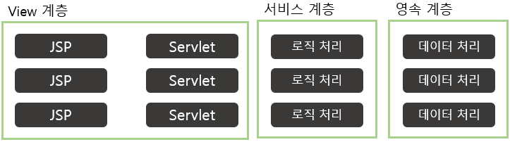 - 웹 MVC 구조를 제외하고 전체 시스템 구조를 정리하면 다음과 같은 계층 3티어 구조가 됨