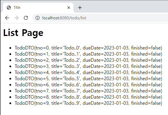 // 목록 메서드(10개의 TodoDTO 객체를 만들어서 반환)