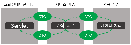 - 3티어로 계층을 분리하는 경우 반드시 계층이나 객체 간 데이터 교환이 이루어짐