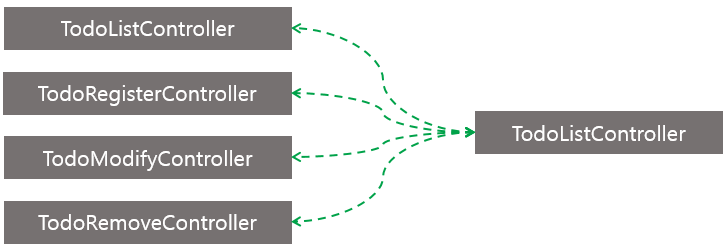 /// 예제에서는 여러 Controller들이 TodoService 객체를 통해 원하는 데이터를 주고받는 구조로 구성하기 때문에 TodoService 객체를 하나만 생성하는 '싱글톤 패턴(Singleton Pattern)' 사용