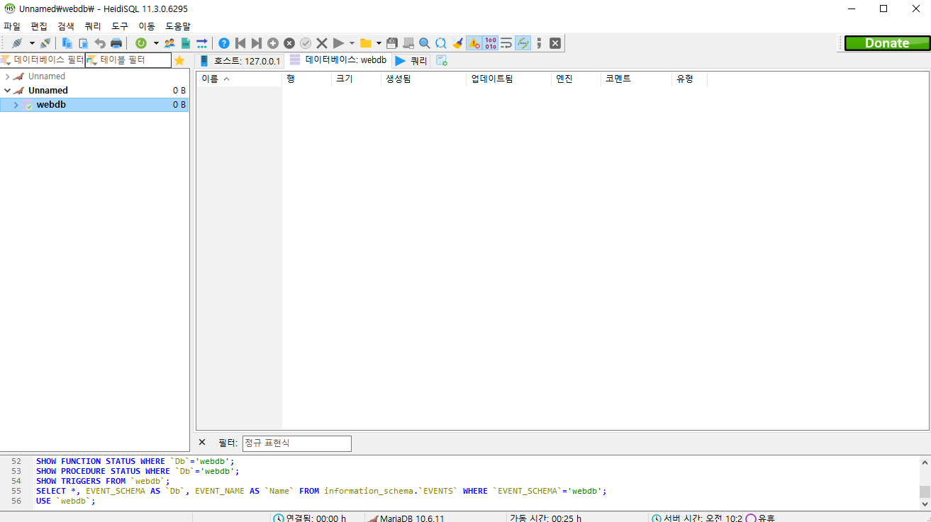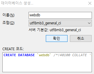 // webdb는 연결하려는 데이터베이스 정보 의미