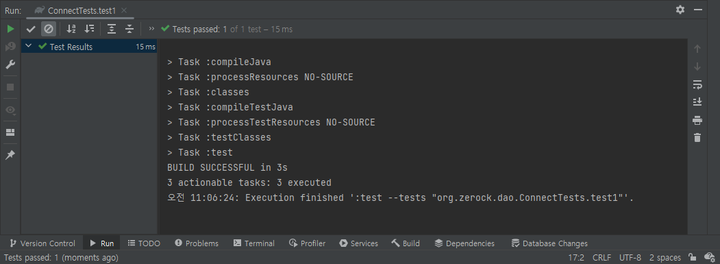 - 데이터베이스에 SQL을 실행하기 위해 반드시 정상적인 Connection 타입의 객체 생성해야 함