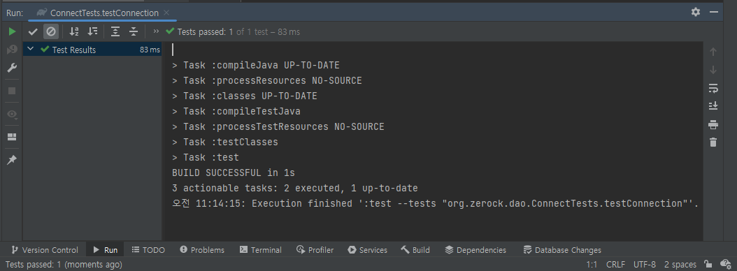 // 데이터베이스와 정상적으로 연결이 된가면 Connection 타입의 객체는 null이 아니라는 것을 확신