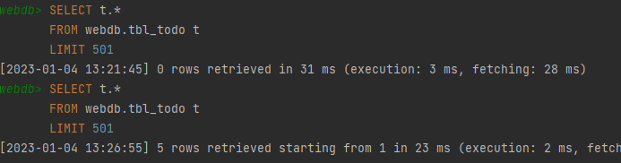 - 데이터베이스가 연동되면 생기는 SQL console 창에 현재 시간 테스트