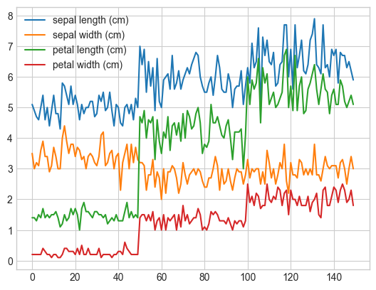 iris_df = pd.DataFrame(iris.data, columns = iris.feature_names)