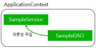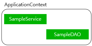 - @Autowired를 이용하면 필요한 타입을 주입받을 수 있다는 사실을 이용, SampleService에 SampleDAO를 주입