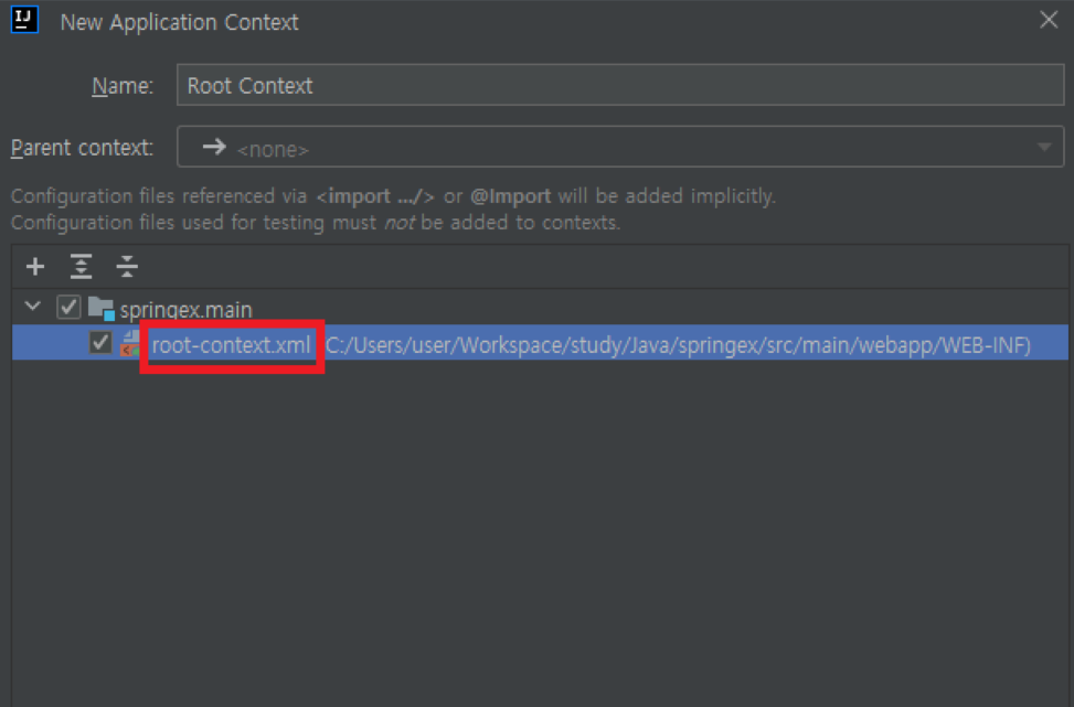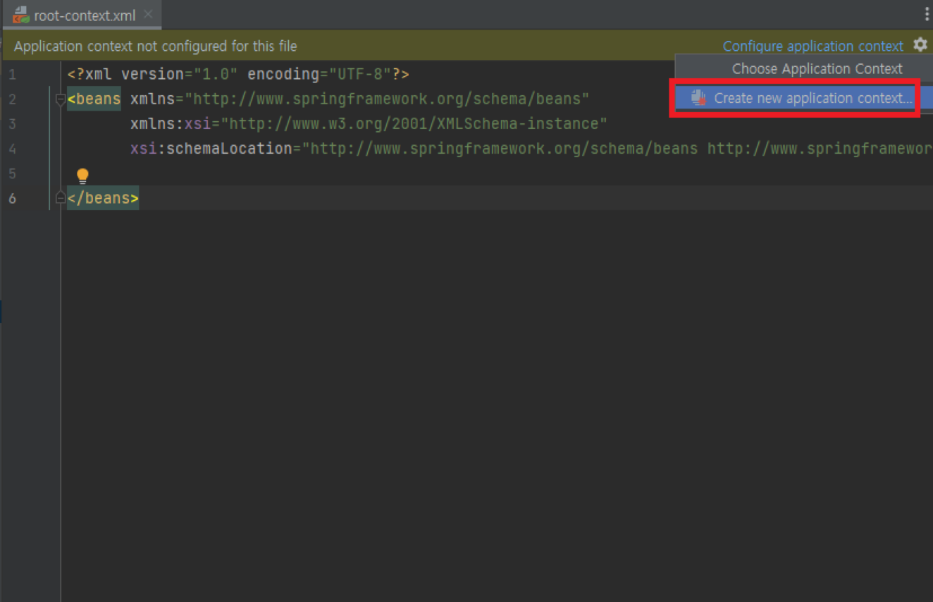 - Configuration application context 설정에서 인텔리제이가 현재 프로젝트를 스프링 프레임워크로 인식하고 필요한 기능을 지원하도록 설정