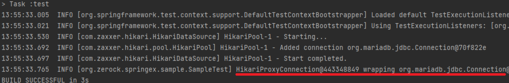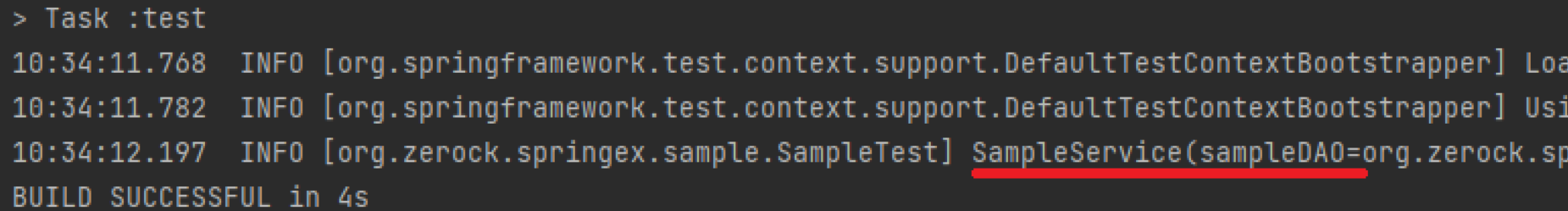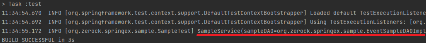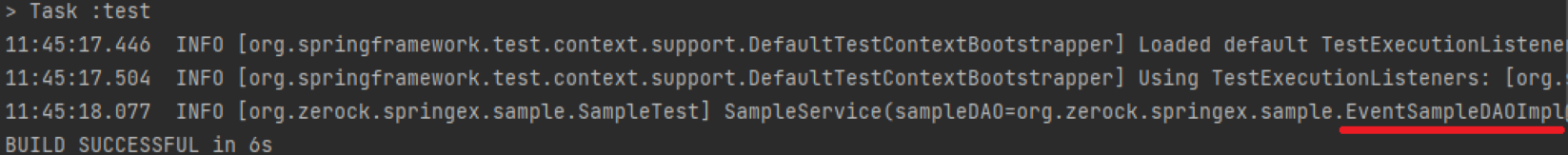 - Test 실행 시, 정상적으로 EventSampleDAOImpl이 주입된 것을 확인