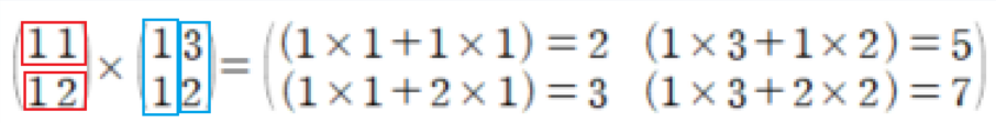 첫번째 행렬 첫번째 행 × 두번째 행렬 첫번째 열 첫번째 행렬 첫번째 행 × 두번째 행렬 두번째 열