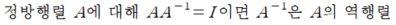정방행렬의 역행렬은 정방행렬과 곱했을 때 단위행렬 I가 되는 행렬
