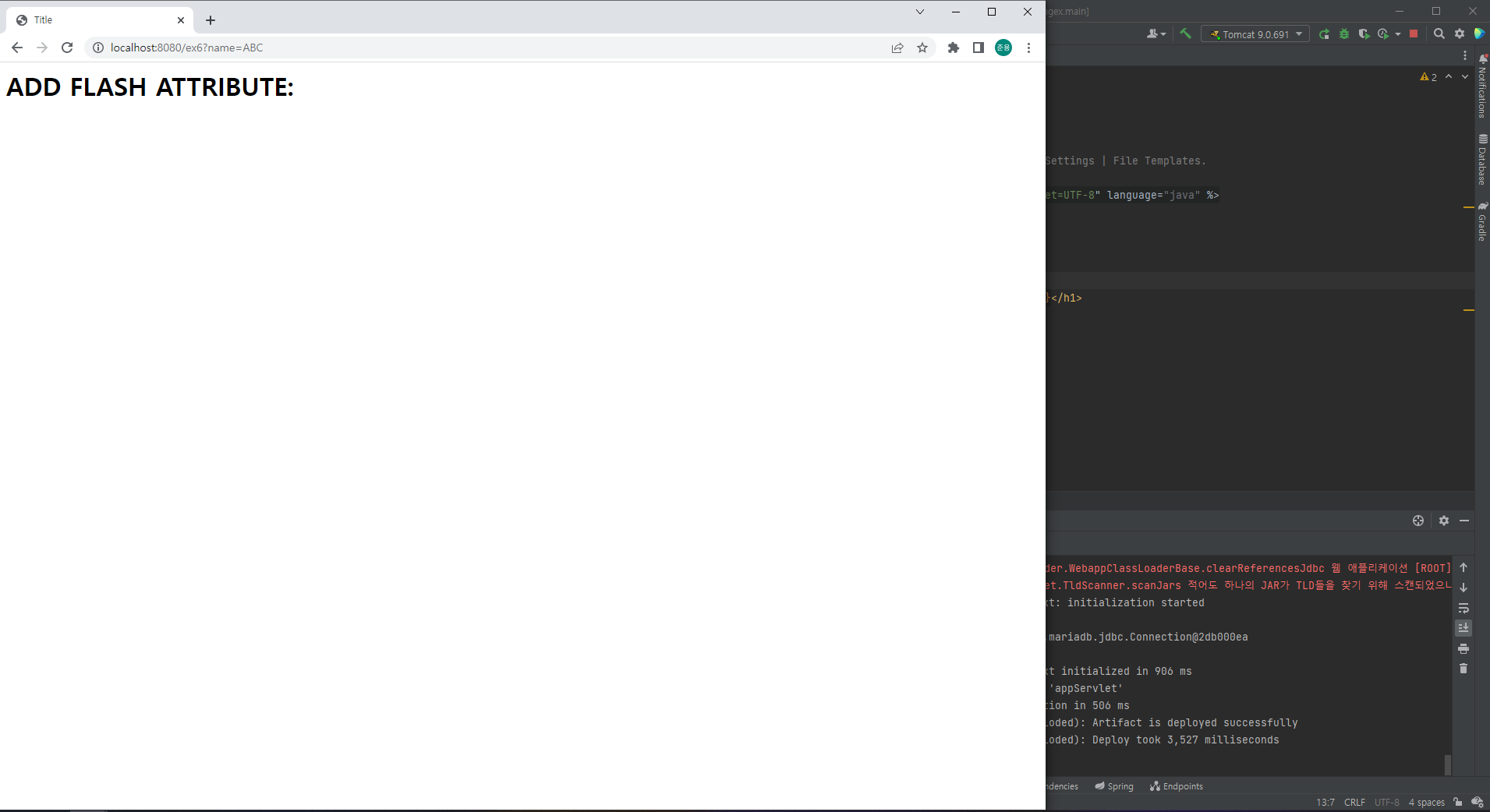 - addFlashAttribute는 일회용으로 전달하고 사라지므로, 해당 페이지를 새로고침하면, "success"가 사라짐을 확인