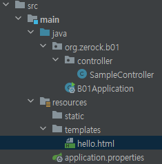 - 프로젝트 생성 시 만들어져 있는 templates 폴더에 hello.html 작성