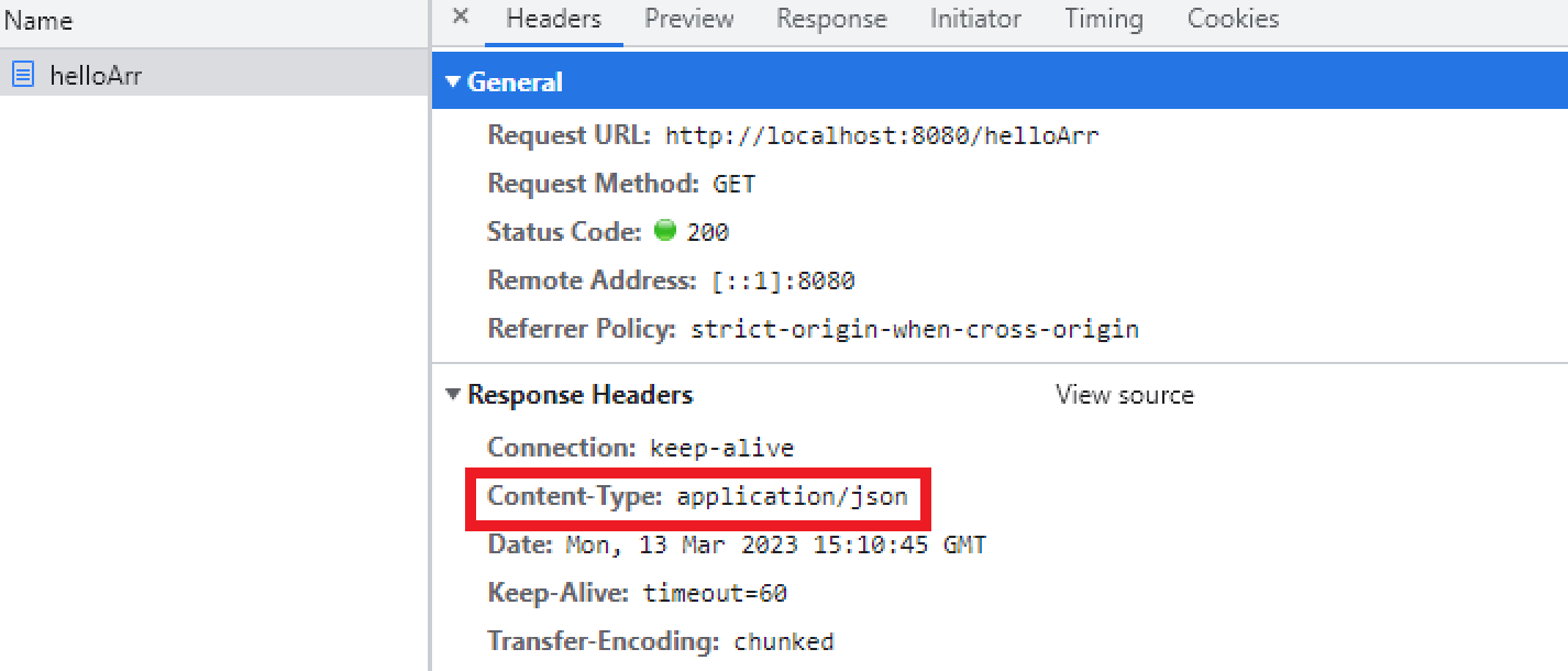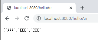 - 브라우저에 'localhost:8080/helloArr' 경로를 호출하면 배열이 그대로 출력