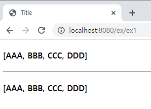 - SampleController에서 ex1()을 추가해서 '/ex/ex1'이라는 경로 호출할 때 동작하도록 구성