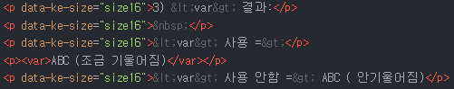<samp></samp> // 컴퓨터 프로그램의 출력 표시