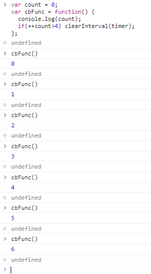 →매번 count를 4와 비교하는 동작도 실행하다가 4보다 커지면 setInterval 함수 자체를 중지하며 4 이후의 숫자의 출력은 중지됨