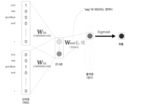 네거티브 샘플링은 부정적 예를 몇 개 샘플링한느 기법으로, 이를 이요하면 다중 분류를 이진 분류처럼 취급