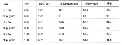 단어 벡터 차원 수는 적당한 크기가 좋음(너무 커도 정확도가 나빠짐)