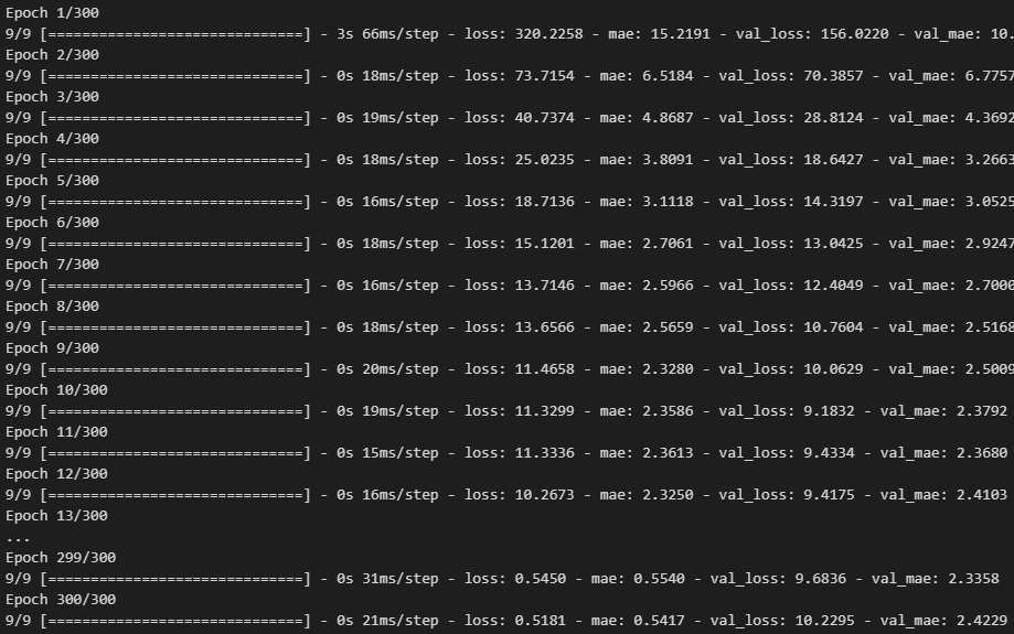model.fit(x_train_fold, y_train_fold, epochs = 300,