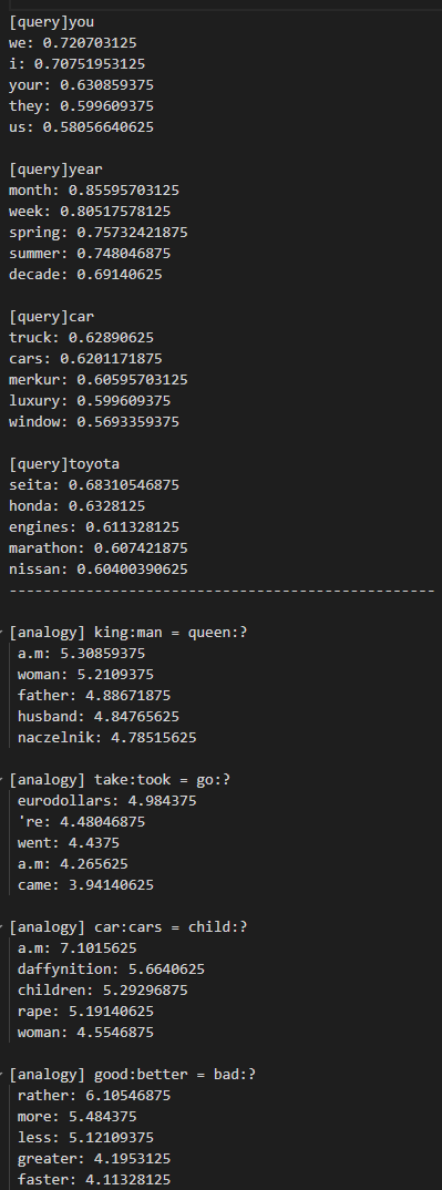most_similar(query, word_to_id, id_to_word, word_vecs, top = 5)