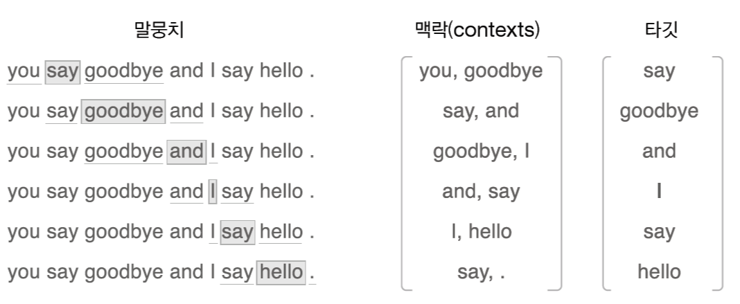 model = CBOW(vocab_size, hidden_size, window_size, corpus)