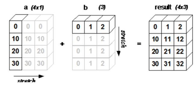 # 서로 shape이 다르지만 브로드캐스팅을 통해 계산이 가능하도록 만들어짐