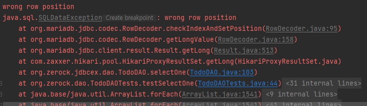 - Test 실행 시, 스프링이 SampleDAO 타입의 객체가 하나이길 기대했지만 2개가 발견됐다는 오류 출력