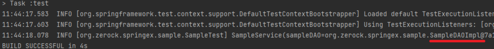 - Test 실행 시, 정상적으로 EventSampleDAOImpl이 주입된 것을 확인