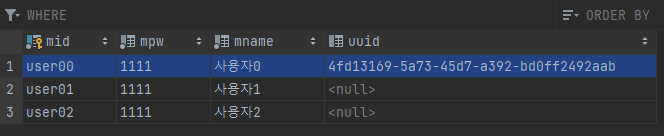 한 개의 row가 영향을 받았다고 숫자로 결과가 출력됨