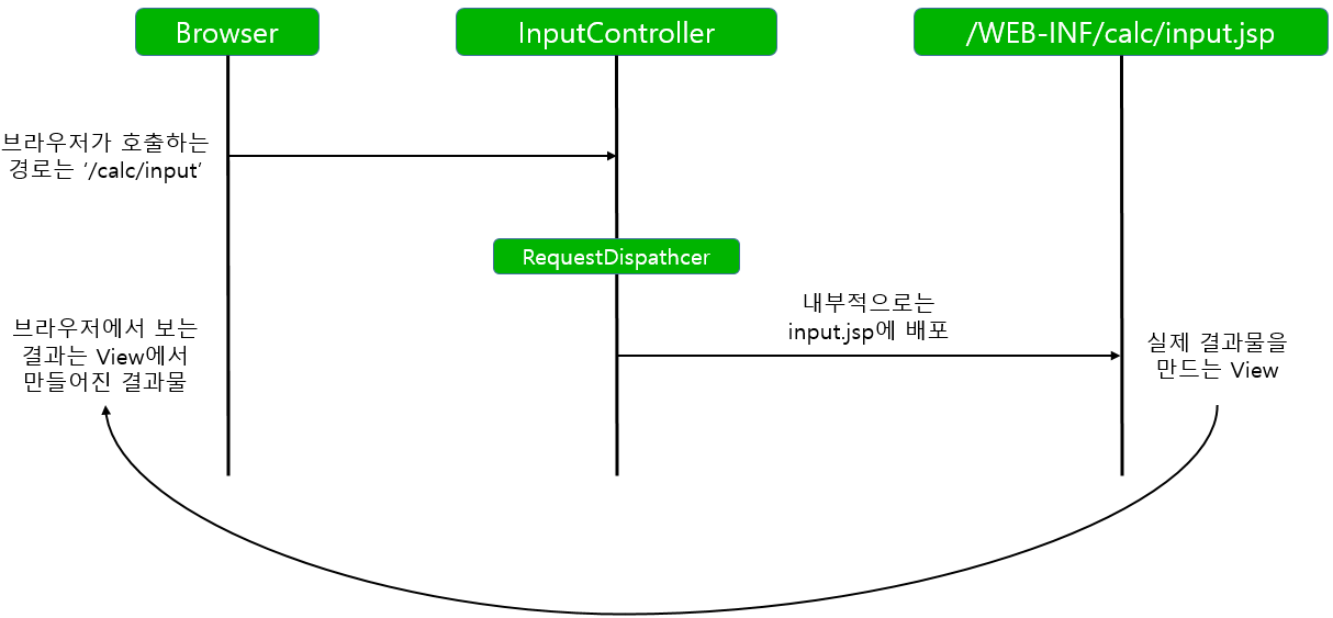 - 웹 MVC 구조에서 Controller는 화면에 필요한 데이터를 서비스 객체를 통해 처리
