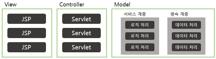 - 웹 MVC 구조에서 모델은 Controller에 필요한 기능이나 데이터를 처리해주는 존재