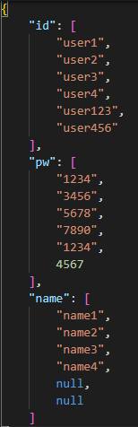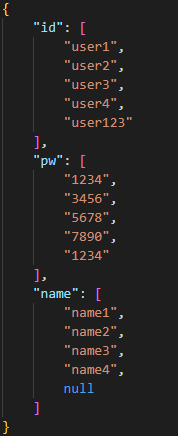 // 로그인에서 id = id인 것이 있다면 성공한 것으로, data를 불러오는데, data가 [{id:~, name:~, psword:~}]형식이므로 첫번째 것만 불러올 수 있도록 data[0]으로 처리