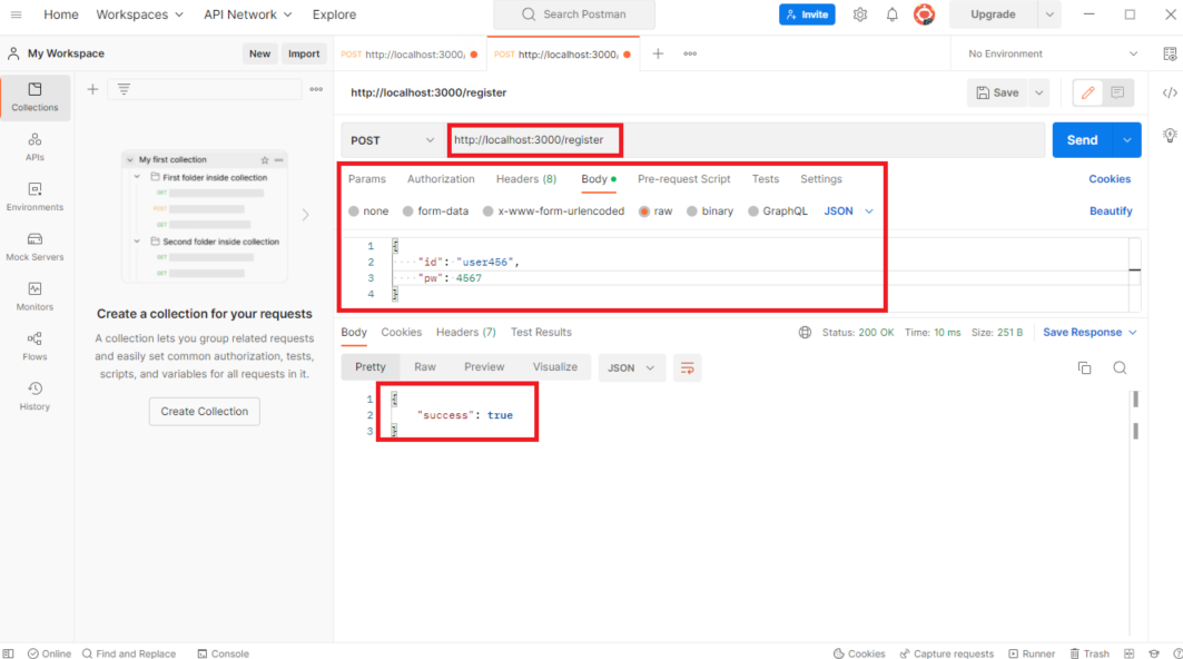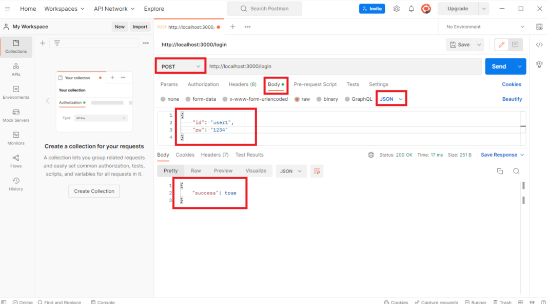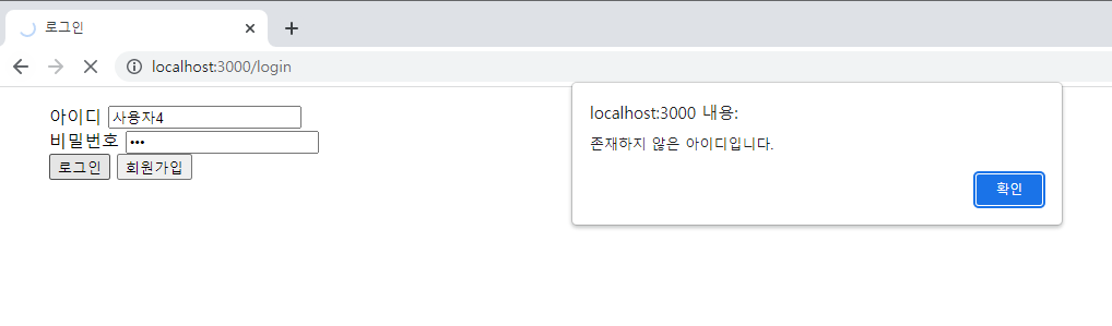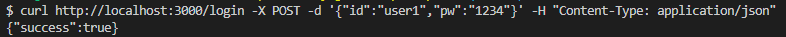 - 새로 회원가입했던 id와 비밀번호로 로그인을 시도하면 성공