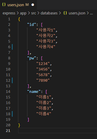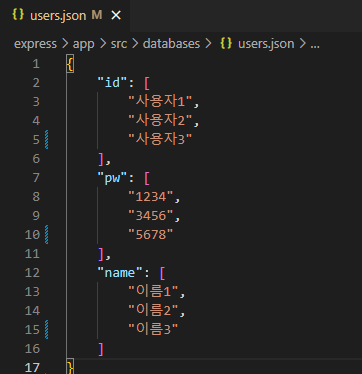1. 기존에 src > databases > user.json파일에 저장했던 회원가입 정보들을 삭제하고, db와 연결할 파일 생성하기